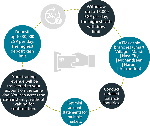The EFG Hermes Securities Brokerage ATM card, gives you access to any of our six ATM machines across Cairo and Alexandria, and offering you:
